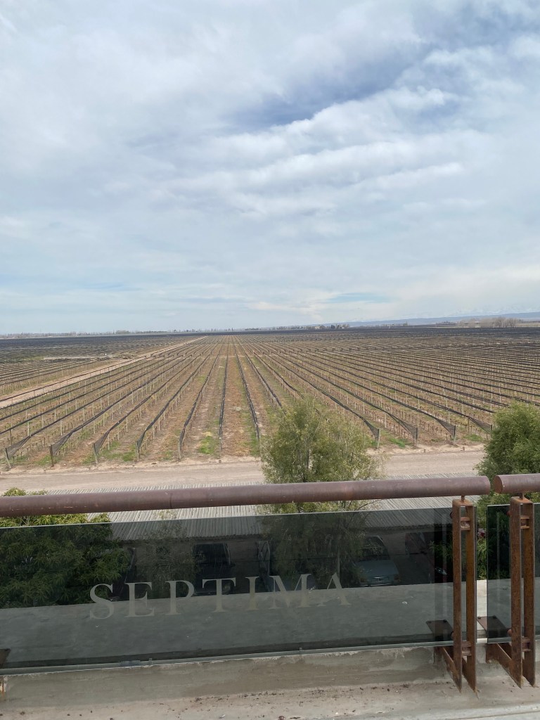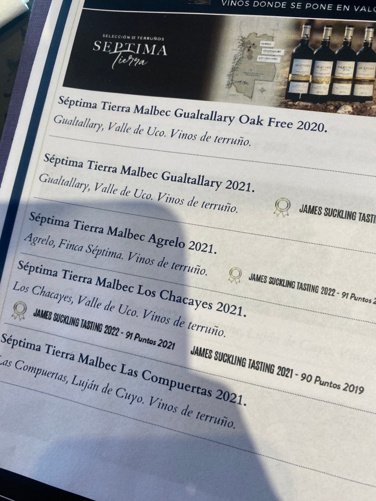 Nosotros elegimos Bodega Séptima, que está ubicada en la Ruta Internacional 7 km 1061 (dónde se encuentran numerosas bodegas). No hicimos la visita guiada pero visitamos el restaurante que se encuentra allí dentro. Pedimos una tabla de quesos, y luego unos pequeños buñuelos de pollo rebozados y vino (de la bodega por supuesto). Muy amablemente una de las chicas que atendía el salón nos explicó detalladamente el vino que estábamos tomando (soy un desastre y lo único que recuerdo es que tenía «notas de ciruela») y el proceso de fabricación y estacionamiento en las famosas barricas, cuyo tipo de madera cambia sustancialmente la calidad y el sabor del vino.